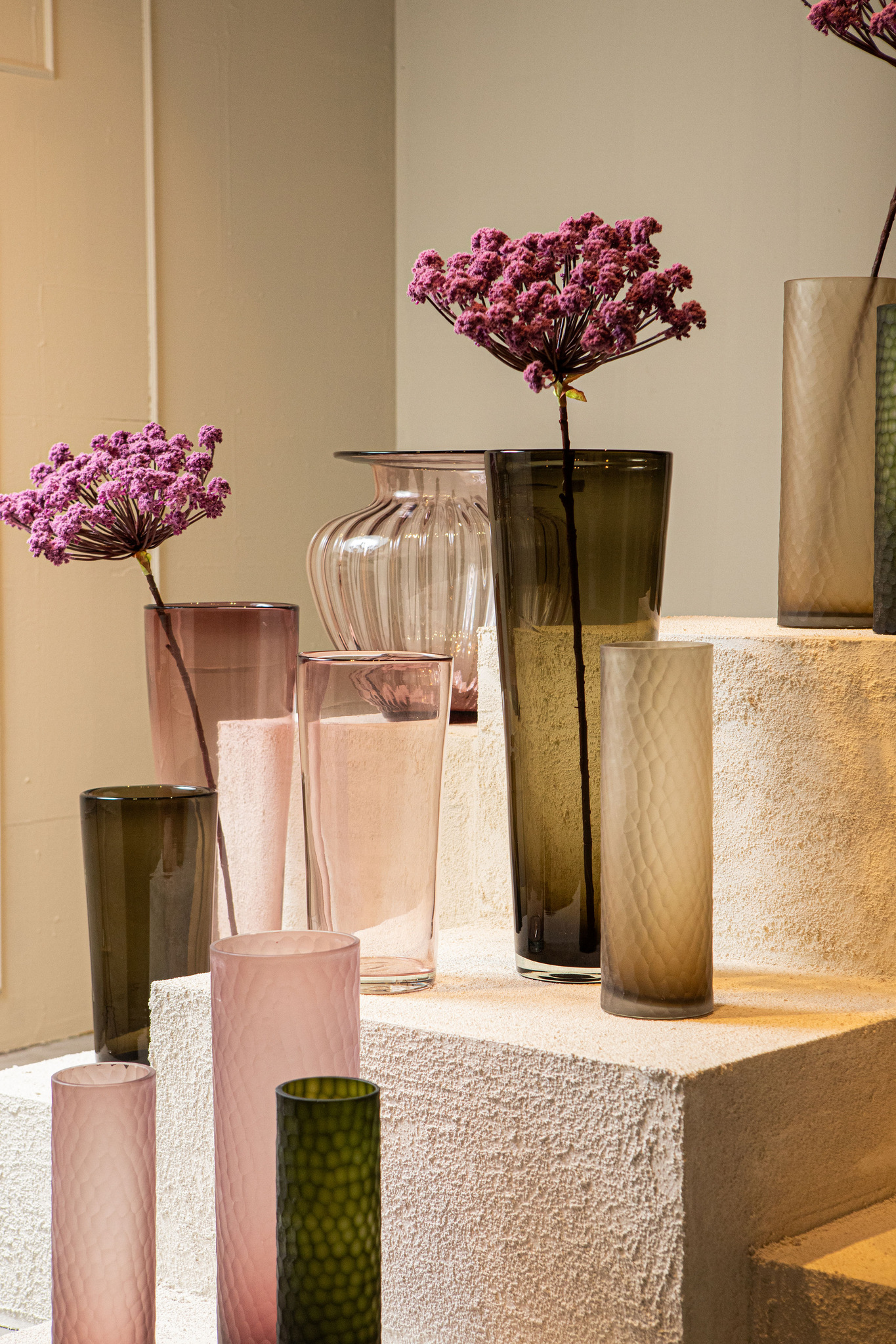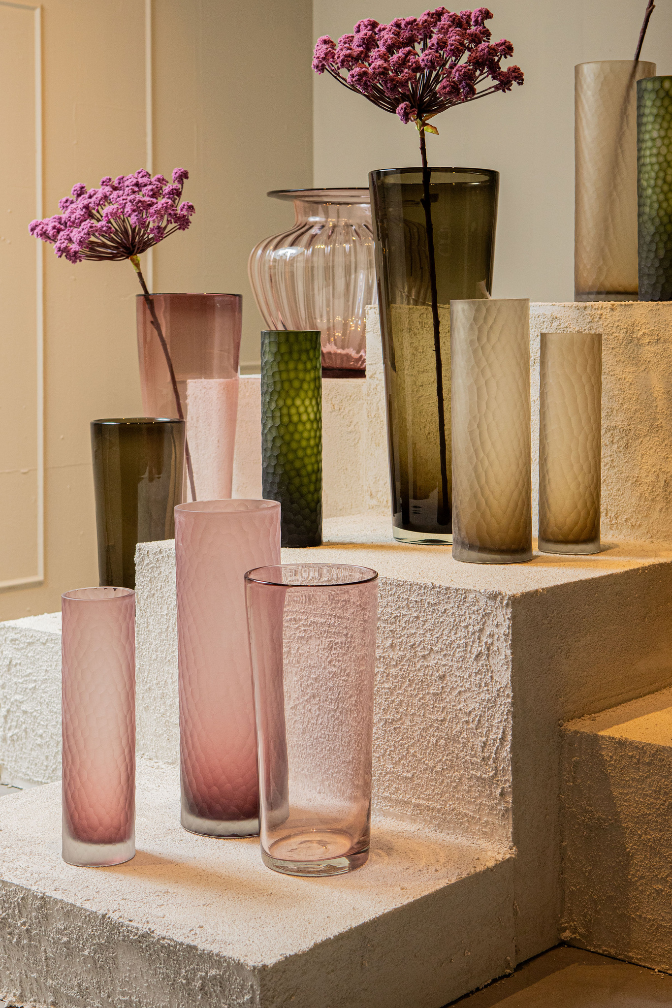 PTMD Paulene Lichtbruine Glazen Vaas Handgeslepen Recht S