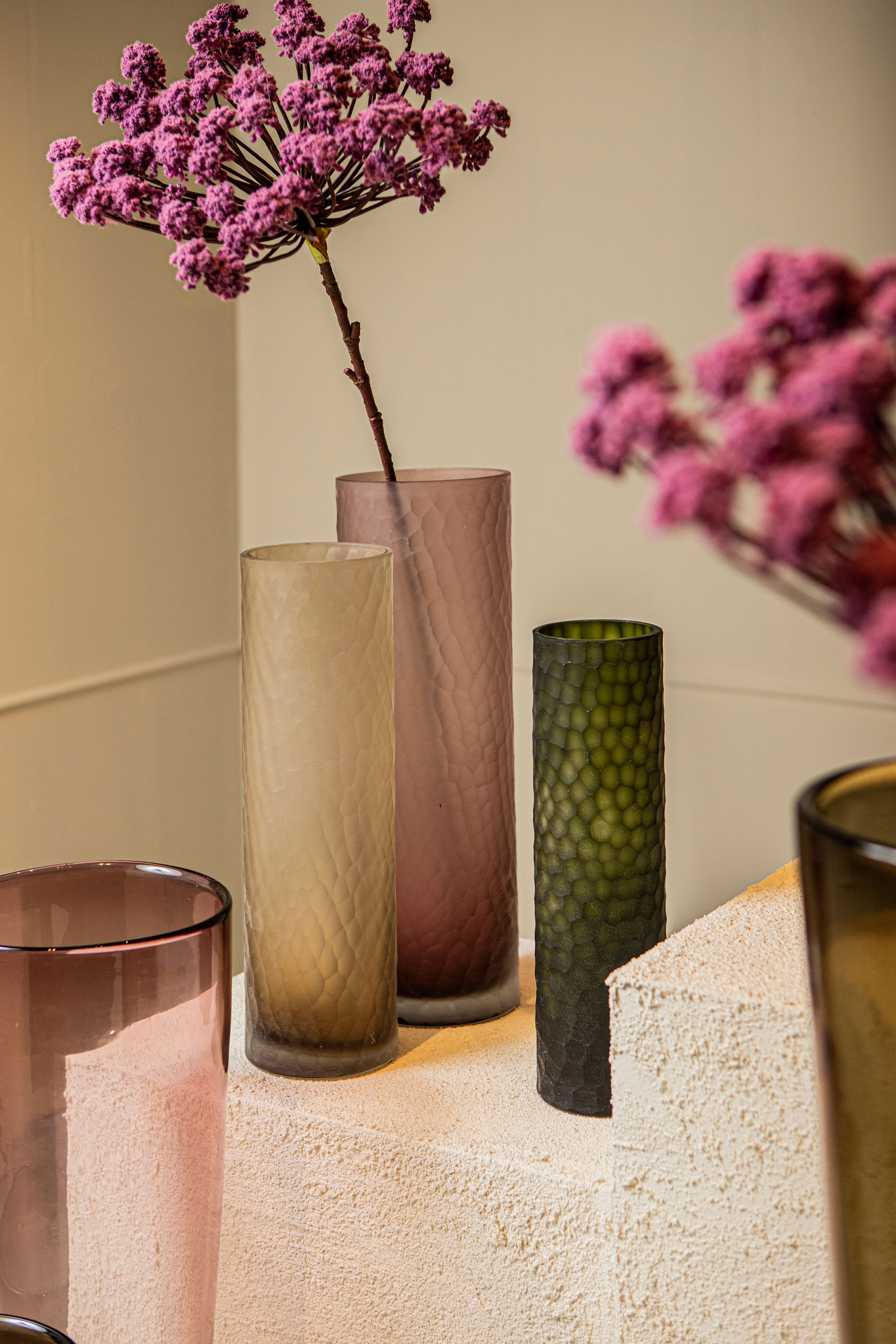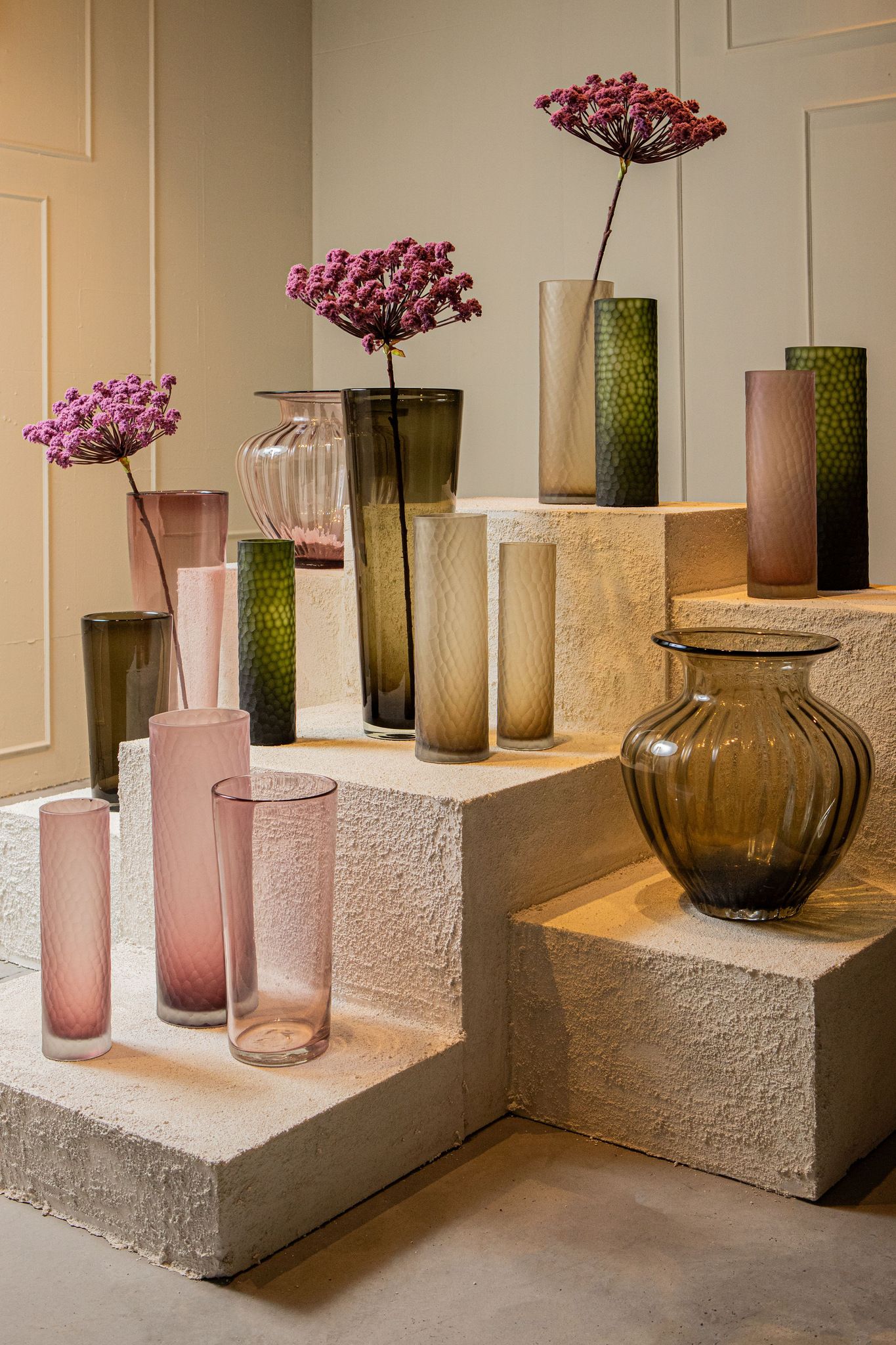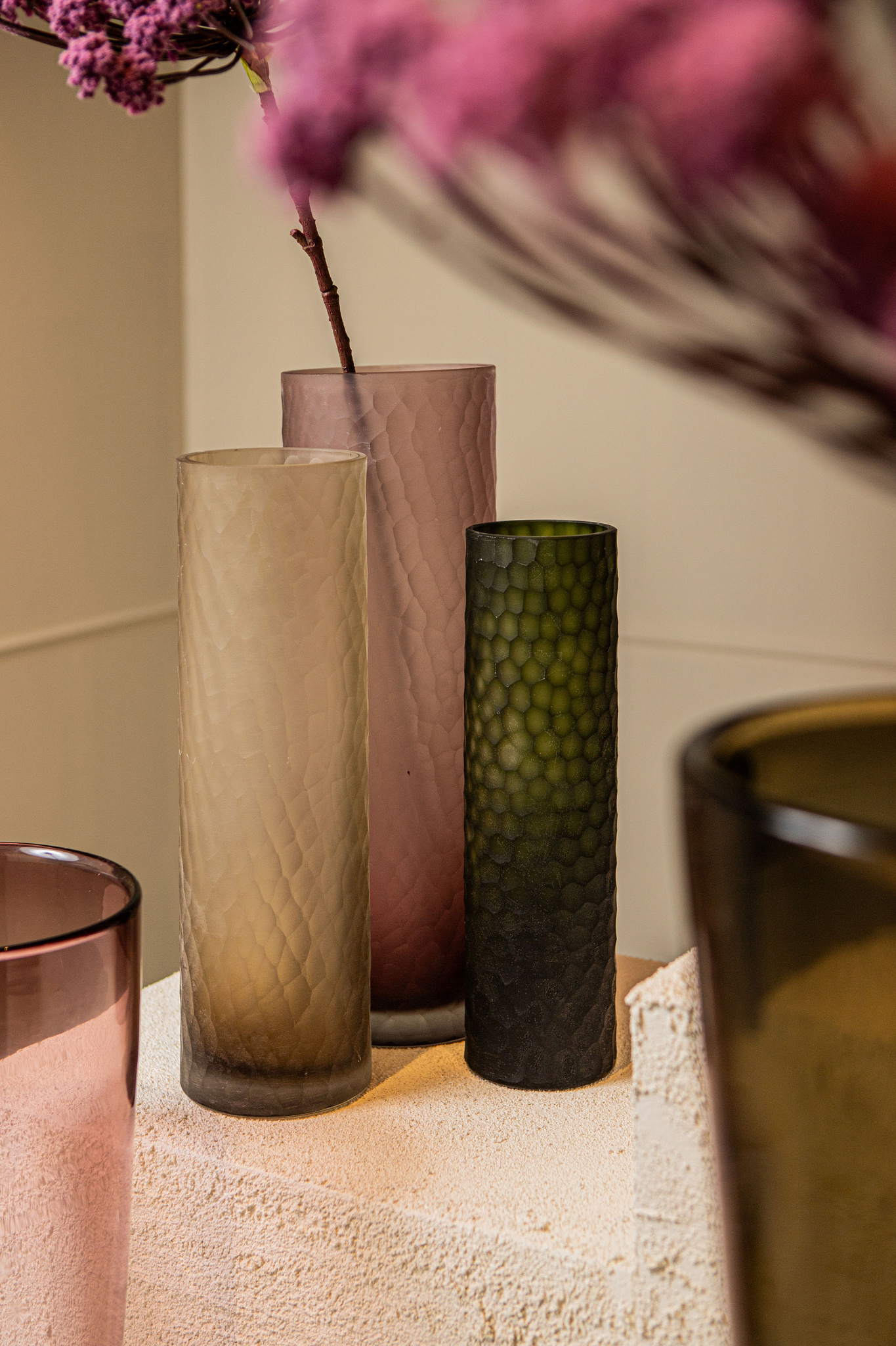 PTMD Paulene lichtbruine handgeslepen glazen vaas recht M